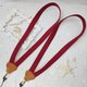 红色系Y型减压双色花布真皮手机颈挂绳 - 挂绳/吊绳 - 棉.麻 红色