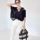 下摆设计为燕尾式曲线,可自然垂坠也可绑结造型,轻松调整穿搭气氛。领口灵感来自古典欧式服装设计,微露颈部肌肤,特别适合搭配不同风格的项链——不论是纤细锁骨链或具造型感的庞克链皆宜。
