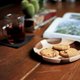 菇菇木盘做工费时,必须先切割圆点,之后钻孔将一颗颗圆点镶进木盘里,再透过手工磨砂修饰让木盘圆润,充满着老师傅的手感和木材的温度。