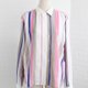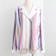 复古欧洲清新简约早春宽松v领个性几何粉蓝条纹长袖古着衬衫-T530