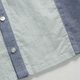细条纹与同色系的面料结合,胸前口袋巧妙融入撞色造型中,