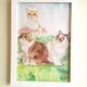 -宠物肖像木颜色原画连签名印章(A4 size)