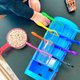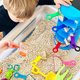 彩虹量杯塔也适合使用在近年非常风行的感官盆(Sensory Play, Mess Play)游戏上,不管感官盆里放的是沙子、豆子、米粒或是意大利面条、各种颜色的量杯可以当作是勺子及汤匙使用,除了在视觉上更增添缤纷色彩,也能引导小小孩认识容量的大小。