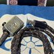 此款熨斗型号为2号アイロン,是昭和时期的产物,供箱字样为烙印而成,盖子打开为熨斗架,熨斗底部与铁架皆有使用痕迹,经测试能过电与发热,但不保证实际用途!