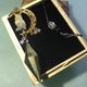 此款主石用了金曜石,闪闪金光如天上星星,设计上配上了手工雕刻猫头鹰,缕花月亮和星星,做了更华丽神秘的感觉~