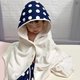 妈咪模式:帮新生宝宝洗澡时,将小蘑菇浴巾专利扣环设计扣在脖子后方,帮宝宝洗澡浴巾不离身,不再手忙脚乱。