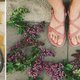 1/ 脚踩在白纸上,用笔勾勒出脚形。