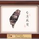 ▲天然材质,每只花纹不同 作品以台湾美丽的岛形为图稿,使用如国画山水般的 玫瑰石所制成台湾岛形的石板画,再搭配上东方 文字“台湾瑰宝”,制作成一件桌上摆饰。