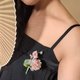 “出污泥而不染,濯清涟而不妖”采用法式刺绣工艺,以粉红和透明亮片绣在荷花瓣上,晶莹亮片会随着步伐波光粼粼,同类工艺的荷叶衬托出荷花的光芒,让你的穿搭沁入一缕荷花香气。 每件都是人手制作,独一无二。 *手工制作,完美主义者请移玉步
