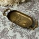 质朴的法国古董黄铜椭圆小托盘,新古典/洛可可复兴风格,精致小巧,黄铜古朴光泽,巴洛克/洛可可风格手柄的涡卷和曲线装饰,无论是放在梳妆台上作为珠宝首饰收纳、玄关处的钥匙零钱盘、书桌文具小物收纳、名片托盘,也可独立摆放作为优雅的装饰摆件。