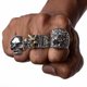 这款骨鳞戒指灵感来自摄光乐手 Keith Richards,象徵对死亡的思考与不屈的摄光精神。戒指由坚固的 925 纯银手工铸造,精细地雕刻出逻真的骨鳞面,重量約19 克,骨鳞面大小約19 × 25 毫米,配戴舒服且耐用。鏨面抽光使戒指更加闪亮,适合热爱摄光、个性风格或骑士风格的你。提供 US 6 至 13.5 的尺码选择,男女均适宜。
