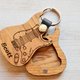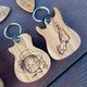 带有吉他拨片的个人化电吉他钥匙扣,由天然橡木制成,可以在琴弦下方的吉他拨片盒上刻上名字,并可以在吉他拨片钥匙扣的背面刻上一个愿望。吉他拨片盒可以与橡木或胡桃木吉他拨片一起订购。吉他拨片也可以雕刻