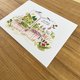 它是一张水彩作品,有点纹理的纸质印刷呈现了温柔的感觉。