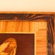 镶嵌细工面板,附框架尺寸 – 24х24 英寸(60x60 厘米)。创作作品时,使用了鸡翅木单板、桦树皮、悬铃木枫木、马科雷木、橄榄白蜡木、萨曼木、林巴木、古琴、阿内格里木、美国胡桃木。框架 - 有色松木,拉丝,古铜色。作品上覆盖着亚麻仁油和虫胶。框架配有吊架。制作这幅面板至少花了大师30个小时的时间。超过 500 个单独的单板碎片组合成一张图片。
