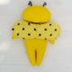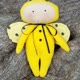 Toy yellow beetle is made of soft fleece and organic cotton.