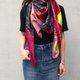 蚕丝披巾的大小为120 x 120 厘米,共有两款设计: