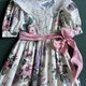 蕾丝翻领 宫廷袖 波浪裙摆 粉色腰带古董娃娃洋装(棉布材质 USA1980s制) size标12 大童vintage瘦的成人OK 尺寸/长93 胸42*2 腰37*2 肩36-37