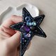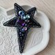 Space star jewelry brooch beaded, handmade star brooch, black star.