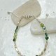 手链由天然绿色碧玺和手工银片组成;它采用拉银线系统制成,可调节长度。