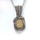 **1:**以纯钛线手工缠绕金红石。内部蕴藏着金色的发状矿物,是其迷人之处。