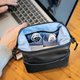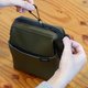 The pouch can be placed in a stable upright position even when open, allowing items to be smoothly inserted and removed without taking up too much space.