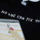 ** 刺绣细节:正面为“没人能修复你”,背面为“自己修复自己”。