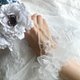 珠子织成的手套,加上鸢尾花造型的轻纱作陪衬,希望为新娘们加添优雅又浪漫的感觉。
