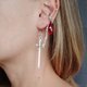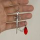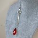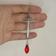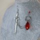 带有链条、剑和猩红色泪珠水晶的超长动漫耳环。礼品信息,礼品包装可用。立即查看!