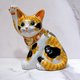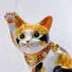 招财猫高举手,象征招财进宝、好运连连💰,并饰以牡丹与松竹梅图案,寓意守护