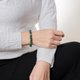 皮尺或线绳贴紧手腕最细处绕一圈,即为手围长度, 无须预留空间,定制化手围已保留足够的余裕空间, 若喜欢配戴较宽松,可将手围尺寸+0.5~1cm。