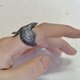 鹰造型银戒,翅膀羽毛纹路皆有刻出,身型流线,戴在手上会如同向下俯冲姿态的鹰,可调整戒围。