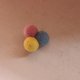 以天然的蓝染、紫胶虫、槐花染制的三种天然植物染羊毛制作成的小球缝制成三角形的别针,造型简约可爱。
