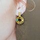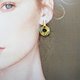 耳坠: 黄铜圆形片【手工双面打磨】,黄铜齿轮【会旋转】,半宝石【绿白色】, 珍珠及14kgf耳针。