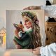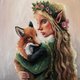 这幅独特的画作描绘了一位美丽的精灵女士拥抱着一只狐狸。采用专业压克力颜料绘制于专业绷紧的画布上。故事独特:揭示了野生动物与人类社会之间微妙的平衡,强调了人们对动物节俭的态度,而动物们需要更多的爱与自由。送给热爱大自然、动物及艺术爱好者的独特礼物。细节丰富、写实且引人注目。