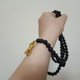 黑火山岩是设计师非常喜爱的天然能量石之一,外表虽然朴实,却能让躁动不安的心平静下来。本件作品的主珠及隔珠分别采用与大地链接深的黑火山岩、无染色优化的高品项红虎眼石,搭配用以成就事物的五股金刚杵,祝愿所有配戴者皆身心清凉。