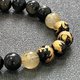 💫天然石:约10mm / 金雕黑玛瑙四神兽 x 金曜石 x 金发晶