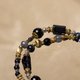 黑玛瑙也称为缟玛瑙,有多彩多姿黑白交错及圆圈状的条纹图案,与玉髓同为石英家族的成员。其希腊文"ONUX"是形容条纹及花纹的意涵,目前市面上有许多黑玛瑙会经过加热处理的方式,来保持其黑色调,国际上运用在黑玛瑙中是可以接受的优化处理方式。