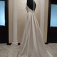 礼服采用触感柔滑的缎面材质,轻盈飘逸,即使拥有华丽的长拖尾,依然自在。搭配头纱,将是这款礼服的完美点缀!