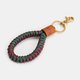 由皮革、黄铜、伞绳编织成的钥匙圈,充满outdoor户外风格的随身配件,黄铜扣件方便配挂于包包或是裤腰上,拿握在手中更可感受扎实的编织手感