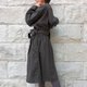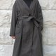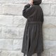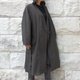 3way tailoring that can be worn even when open, fastened with a button, or waist-shaped with a belt. The big walnut button in the center is the point. Patch pocket with flap on the right and side pocket on the left. The large asymmetrical pocket is also an accent of the design, but it is convenient and very useful.