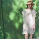 共二色: 黑郁金印花(日本进口素材)/泡泡格纹(model着用)