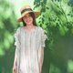 带有绉褶触感加上细条纹图案的舒适春夏棉料
