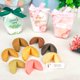 - ●可协助中奖签分装 ●订购20个以上同款口味才会出货 ●提供婚礼签文范例及版型,并可修改内容●礼盒收到后需自行组装并装入饼干