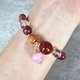 🔸 材质:(主珠)红玛瑙 12mm、老矿草莓晶/山檀 7-8mm/(活动扣)猫眼石吊坠 10mm