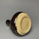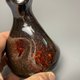 这个轮抛的 tokkuri 是在我在台湾的小陶艺作坊里制作的。我使用了台湾当地的粘土,并在这件作品上涂上了光泽的黑色。我在锅上撒了台湾木灰,并添加了第二层带有斑点的紫色“星星”。我相信它有一种仰望午夜天空、凝视星空的感觉。