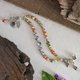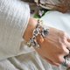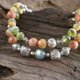 • **材料**:正宗泰银、珊瑚化石 (珊瑚玉)(8.5-8.8 毫米)、金发晶(6.7 毫米)、葡萄石 (8 毫米) 、拉长石 (10.7 毫米) 、 925纯银(圆珠3 和 4 mm)。