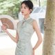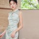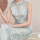 渺清影 新中式复古中國風 提花拼纱修身气质洋裝