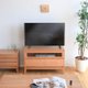 如果使用跟电视一样的黑色电视柜,虽然颜色统一,但却让周围有沉重的气氛。但如果是使用这样的木家具的话,就能改变为明亮的印象。将自然的气息吹向被数位包围的生活的这样美丽家具,是我们公司携手旭川的家具工房与熟练的职人所原创的“MUKU系列”其中一款,并以丰富阵容自豪。