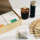 - 在京都烘焙特制的配方咖啡套组, 共4款依饮用时间量身打造的特调咖啡 以冷水浸泡八小时,就可以享用清爽的冰咖啡。 送礼自用两相宜!