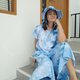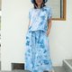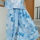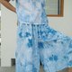 靛蓝色扎染宽裤。酷炫图案扎染宽松阔腿裤,有 2 个口袋。棉质布料柔软舒适,适合夏季和日常穿着。